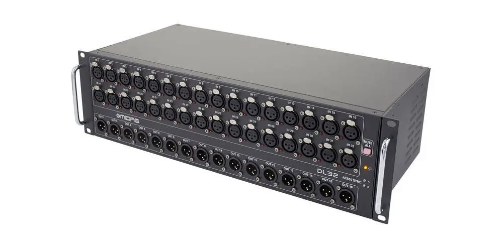 La mezcla digital ha revolucionado prácticamente todo en el flujo de trabajo de producción de entretenimiento en vivo. El DL32 es la solución perfecta para conectar al talento en el escenario con su consola Front of House (FOH) y el resto del mundo: la caja de escenario digital DL32 repleta de E/S y muy asequible. El DL32 proporciona 32 preamplificadores de micrófono controlables de forma remota de la serie Midas PRO, más de 16 retornos XLR analógicos balanceados en el extremo del escenario y todo lo que se necesita es un solo cable Cat5.